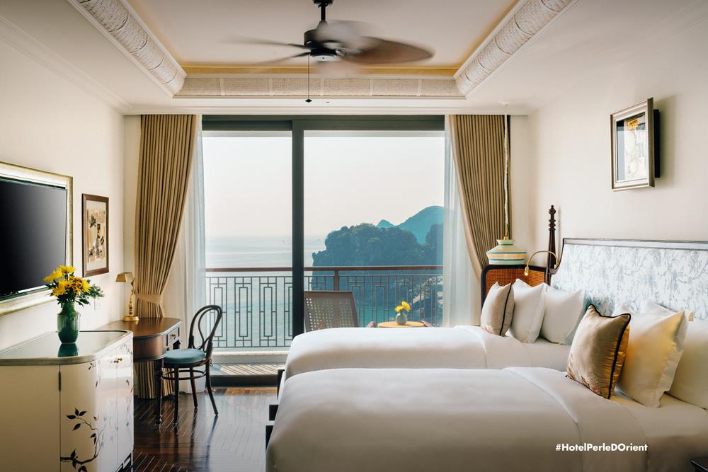 Khách sạn được xây dựng theo phong cảnh Indochine cổ điển. Từ khách sạn, bạn có thể bao quát trọn vẹn vịnh Lan Hạ quyến rũ, ngắm nhìn cảnh tàu thuyền tấp nơi ở khơi xa cho đến những dãy núi hùng vĩ của quần đảo Cát Bà. Hôtel Perle d’Orient Cat Ba bao gồm 12 tầng với tổng 121 phòng xây dựng theo phong cách mở. Các phòng đều được mô phỏng theo mô hình nhà truyền thống Việt Nam và gợi lên những giá trị lịch sử Đông Dương gây ấn tượng mạnh với du khách khi lần đầu đến.
