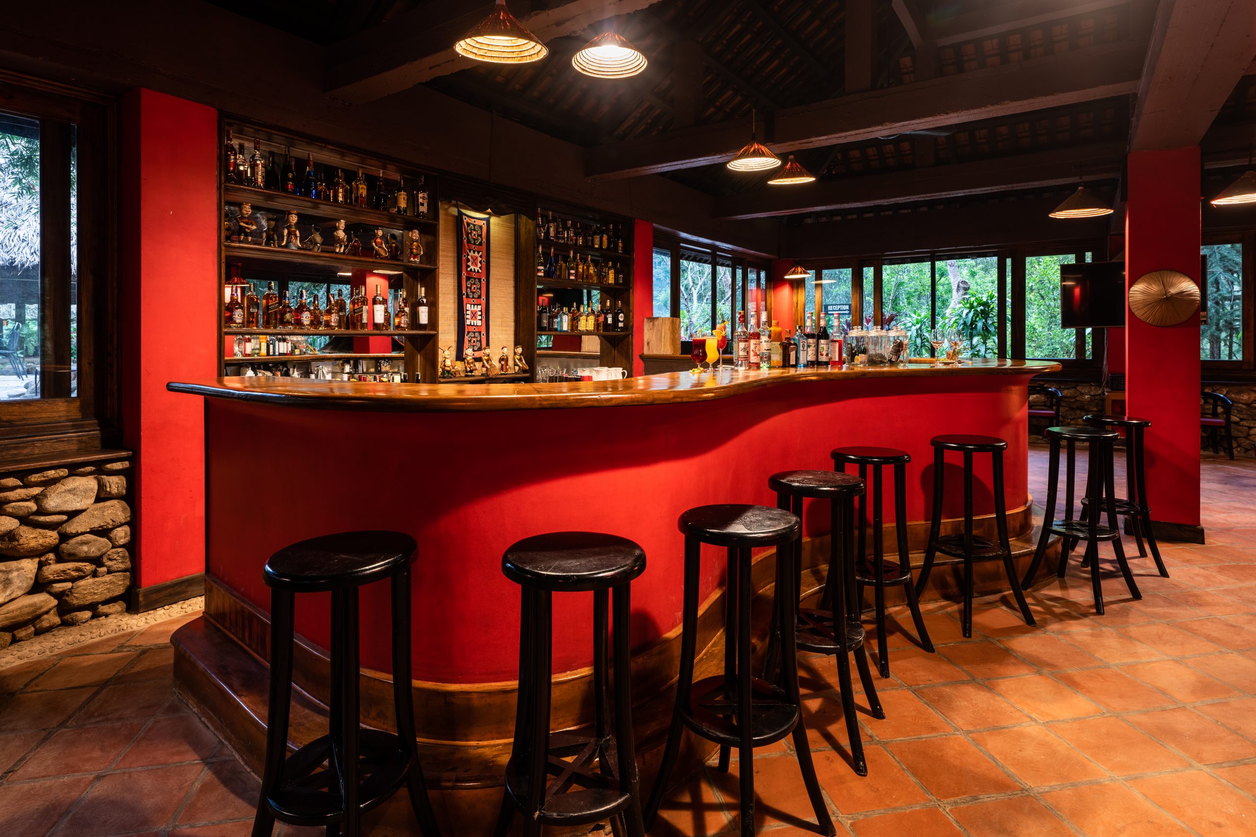 Bên cạnh đó, tại Thông Nguyên Bar thì lại được thiết kế theo không gian mở sang trọng với tone màu đỏ ấm áp hoàn toàn phù hợp cho những buổi tối lãng mạn và ấm cúng. Là nơi thích hợp cho các cặp đôi hoặc nhóm gia đình, bạn bè tụ tập sau một ngày khám phá, tham quan.