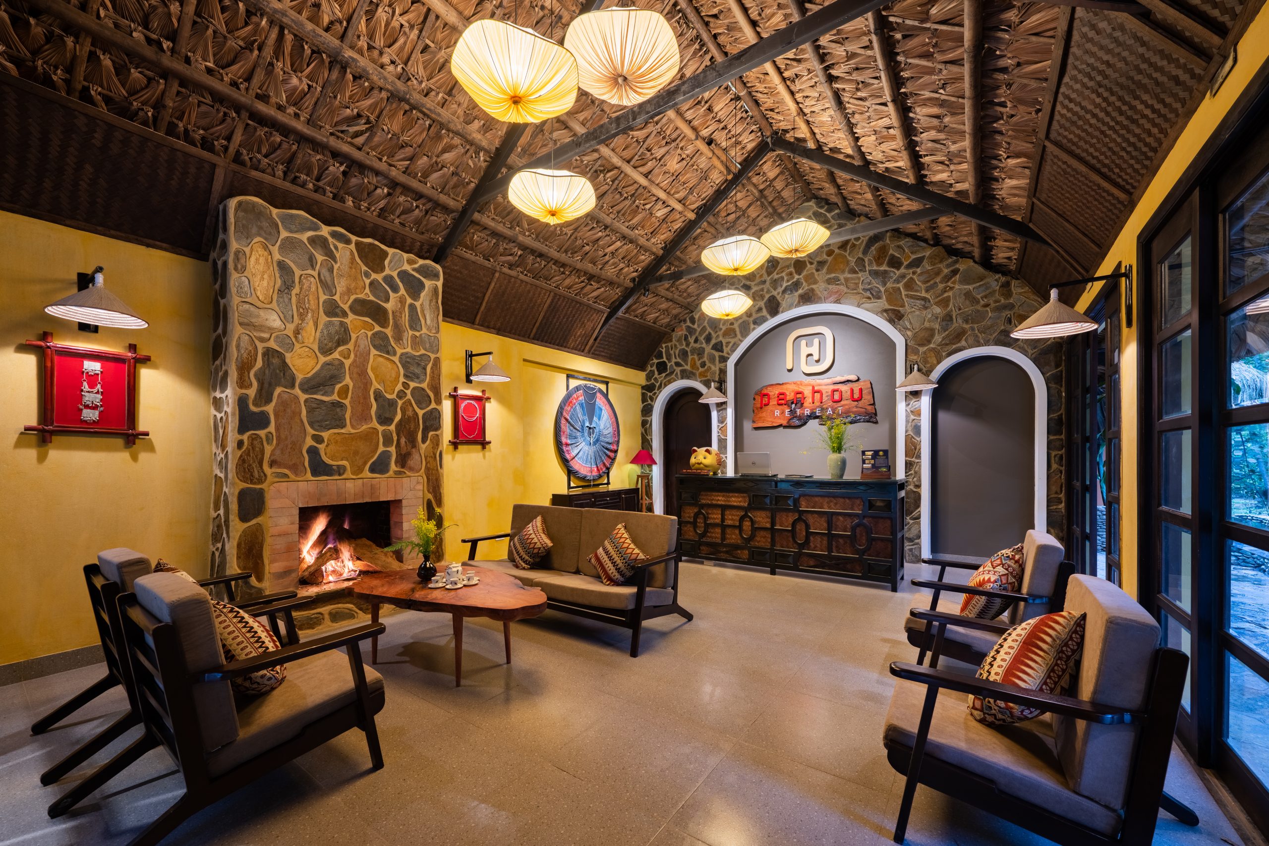Panhou Retreat là sự kết hợp hoàn hảo giữa thiên nhiên và văn hóa. Bước chân vào khu du lịch, dấu ấn văn hóa của dân tộc Dao đã được khắc họa rõ nét qua từng họa tiết trang trí. Cách bài trí đơn giản, tinh tế mang đến cho du khách trải nghiệm thoải mái nhất, cảm nhận rõ nhất núi rừng xung quanh.