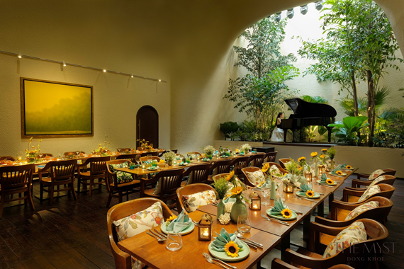 The Myst Hotel Dong Khoi được thiết kế lấy cảm hứng từ nền văn hóa địa phương với không gian thoáng mát, tận dụng tối đa ánh sáng trời, sàn gỗ màu nâu sẫm điểm xuyết những tác phẩm nghệ thuật và nội thất nguyên bản còn vương màu thời gian, gợi nhớ không gian sống của những gia đình ở đất Sài Gòn – Gia Định xưa.